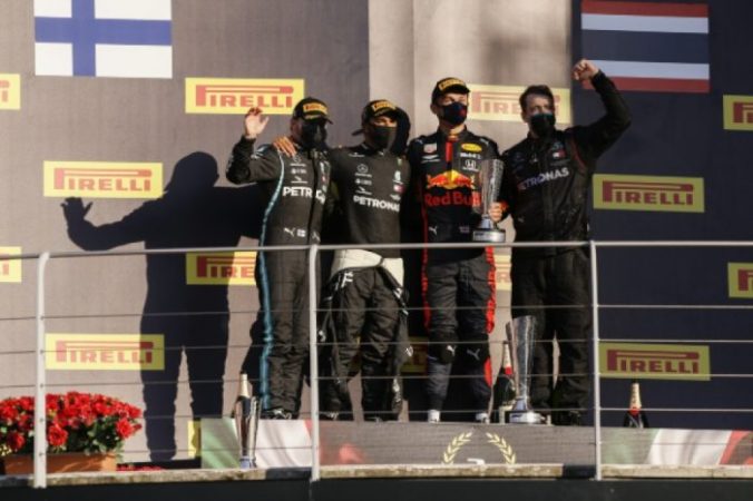 Pole position perdida logo na largada. Primeiro lugar recuperado na relargada. Liderança de ponta a ponta na terceira saída do GP da Toscana. Sim, a primeira corrida da história do autódromo de Mugello foi dividida em três partes por causa dos acidentes e Lewis Hamilton festejou muito sua vitória em “três corridas num dia”. O 90° triunfo do inglês na Fórmula 1, contudo, ficou marcado pelo forte protesto contra o racismo pelo mundo, desta vez com ele vestindo uma camiseta cobrando a prisão de policiais que assassinaram Breonna Taylor, nos Estados Unidos