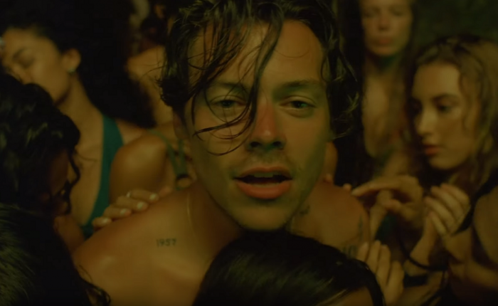 Também chamam atenção as cenas em que Harry Styles aparece sem camisa, próximo a outras pessoas.
