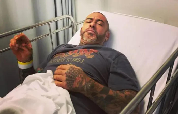 Ele estava participando de um passeio de moto com amigos e registrou o momento na rede social. Em seguida, apareceu no hospital tomando medicamento na veia.