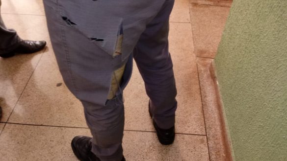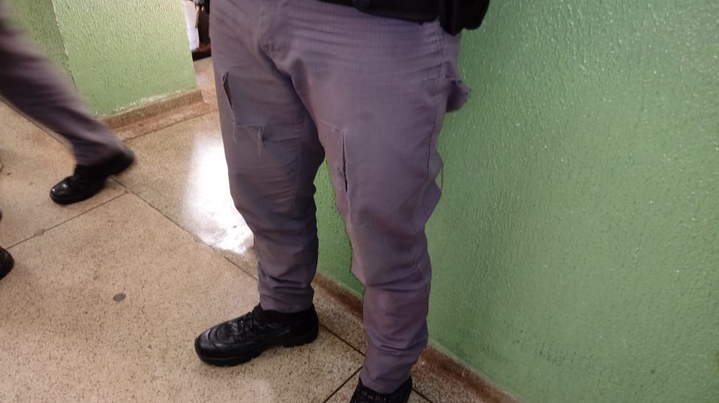 Policiais militares foram acionados para atender ocorrência de agressão familiar na rua Francisco Romualdo de Souza, bairro Valentina Figueiredo, zona Norte de Ribeirão Preto. D. F. M. de 37 anos, embriagado e sob efeito de drogas, estaria “botando a casa abaixo” e agredindo familiares. Quando os policiais tentaram contê-lo houve a reação e o indiciado com tesoura rasgou a farda e feriu um dos policiais no rosto e pernas. Foi necessário uso de força moderada para detê-lo. Na Central de Flagrantes recebeu voz de prisão por desacato, ameaça, lesão corporal, resistência e dano ao patrimônio.