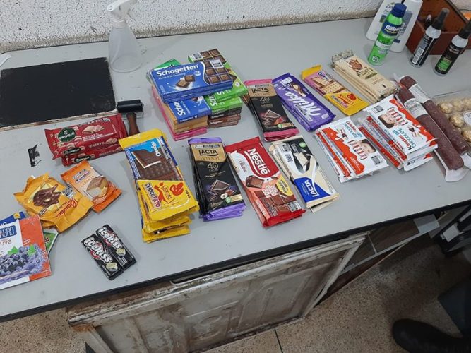 Ao perceber que seria abordado, tentou fugir, mas foi contido na Avenida Meira Júnior. No B.O., consta que os PMs não encontraram nada de suspeito com o homem durante revista pessoal, mas ao abrir a mochila que ele carregava, encontraram várias barras de chocolate, doces, bolo, salames, produtos para barbear e outros itens.