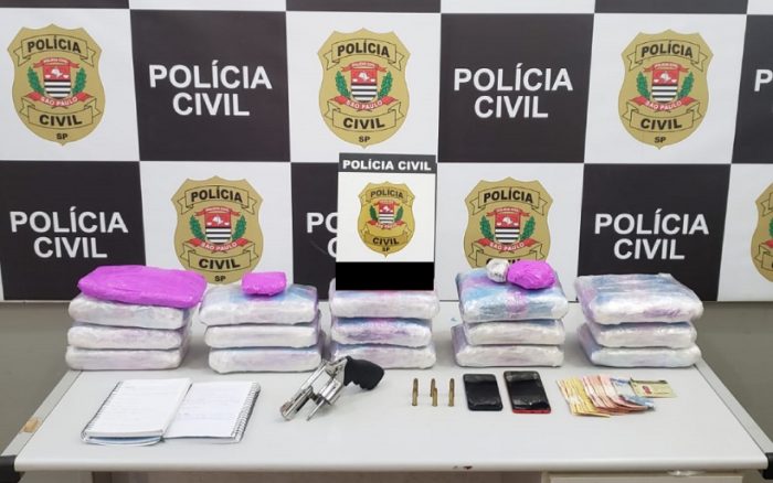 A Polícia Civil prendeu um homem, de 28 anos, por tráfico de drogas e posse ou porte ilegal de arma de fogo, na última sexta-feira (26), em Ribeirão Preto. Na ação, 19 tijolos de maconha e um revólver foram apreendidos.