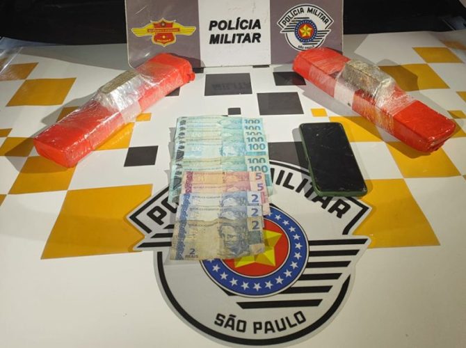 Dentro, encontraram quatro tijolos de maconha, totalizando dois quilos da droga. Além disso, apreenderam R$ 716 em cédulas e moedas trocadas e um aparelho celular. O homem foi preso por tráfico de drogas e encaminhado para uma unidade prisional.