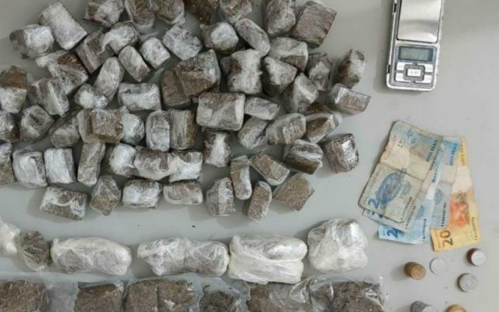 Pelo local, os policiais conseguiram deter o homem com R$ 40. No entanto, com auxílio da equipe do Canil, também foram localizados cerca de 2 kg de maconha em diversas porções, assim como uma balança de precisão e plástico filme.