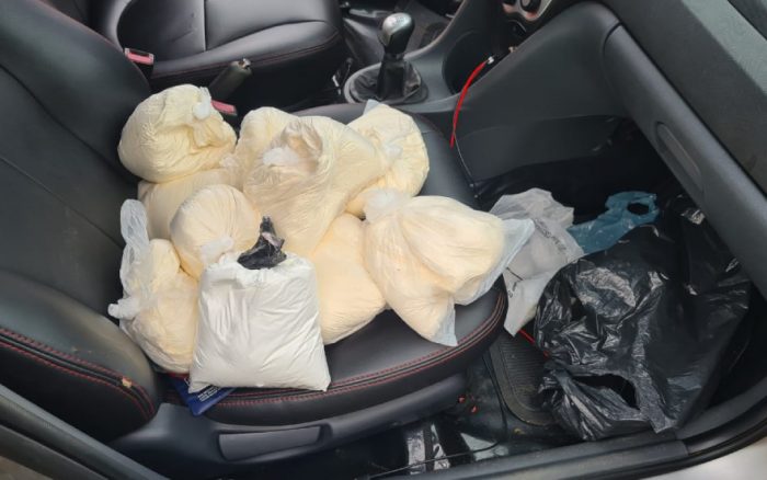 Em vistoria pelo carro, os agentes encontraram dez pacotes de droga, que aparentava ser cocaína. Posteriormente, o entorpecente e o automóvel foram apreendidos e o homem preso em flagrante por tráfico de drogas.