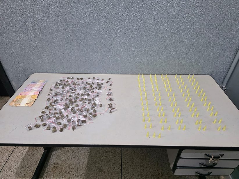 Questionado sobre as drogas que havia dispensado, ele admitiu que estava assumindo o ponto e abastecendo um menor que iria vender os entorpecentes. A droga foi apreendida. Os policiais também apreenderam R$ 149 em cédulas e moedas de diversos valores.