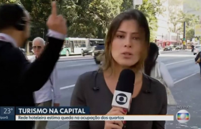 Quando a jornalista abordava a questão do turismo na capital, que receberá dois grandes eventos nos próximos dias, a Marcha para Jesus e a Parada Gay, um rapaz que passava pela rua mostrou o dedo do meio em direção à câmera da emissora, sem mostrar seu rosto. Michelle chegou a desviar levemente sua cabeça no momento