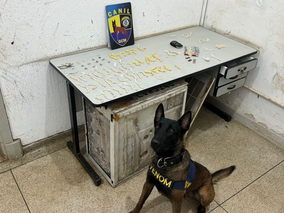 Indagado sobre haver mais drogas escondidas, ele preferiu se manter em silêncio. Foi acionado então o trabalho do cão, K9 Venom, que localizou 1 embalagem plástica contendo mais 310 pedras de crack embaladas da mesma forma que as encontradas anteriormente (totalizando 363 pedras de crack), (110 gramas) 15 trouxas de maconha (20 gramas) e 1 balança de precisão, às margens do córrego Ribeirão Preto, pela Avenida Álvaro de Lima, cerca de 5 metros do local em que ele estava.