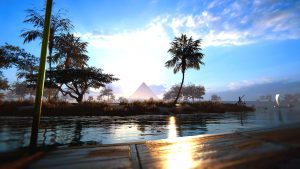 O rio Nilo é retratado como eixo central da civilização egípcia em uma das cenas mais marcantes da expedição. Detalhes inéditos da paisagem egípcia | Divulgação