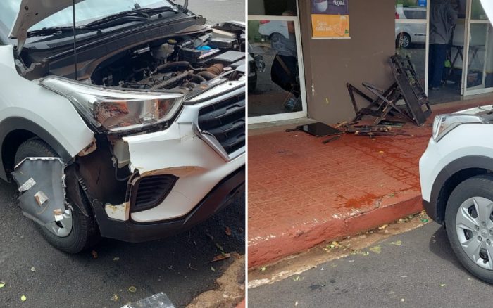 Imagens registradas no local do acidente mostram que a frente do automóvel ficou danificada, assim como uma das mesas do estabelecimento quebrada. As causas que teriam motivado a colisão ainda devem ser investigadas.