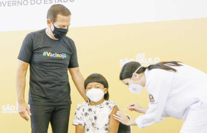 A primeira criança vacina­da contra a covid-19 no Brasil é um garoto indígena de 8 anos. Davi Seremramiwe Xavante vai periodicamente de Piracicaba a São Paulo para um tratamento de saúde no Hospital das Clí­nicas da Universidade de São Paulo (USP). O governador João Doria (PSDB) acompa­nhou o início da campanha es­tadual para crianças de 5 a 11 anos no início da tarde desta sexta-feira, 14 de janeiro.