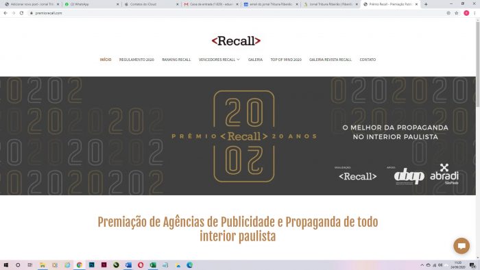 As inscrições para a histórica 20ª edição do Prêmio Recall de Criação Publicitária terminarão em 30 de setembro. Cada peça tem o custo de R$ 190,00. A mais importante premiação publicitária do interior paulista entregará troféus de ouro, prata e bronze em nove categorias (Vídeo, Impresso, Áudio, Gráfico, Promocional, Packaging Design, Branding Design, Social Media e Social Media Stories), além do troféu de ouro Jack Ronc para a agência que obtiver o maior número de trabalhos no short-list.