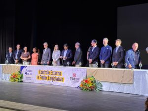Na mesa de autoridades, o evento foi marcado pela participação da Conselheira Cristiana de Castro Moraes, Vice-Presidente do TCESP, do Conselheiro-Corregedor Dimas Ramalho e do Conselheiro Maxwell Borges de Moura Vieira, todos representantes do órgão de controle externo.