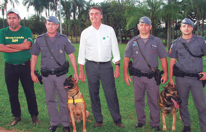 Na visita à estância 2L, Bolsona­ro foi recebido pelo pecuarista Adir do Carmo Leonel, seu filho Paulo Leonel e pelo advogado e produtor rural Pau­lo Maximiano Junqueira, entre outras lideranças regionais do agronegócio. Além de fazer dezenas de selfies com os convidados, o presidenciável foi tietado também pelos componentes de uma viatura do Canil da Polícia Mi­litar. Três PMs, acompanhados de dois pastores alemães, fizeram questão de tirar fotos ao lado do deputado.