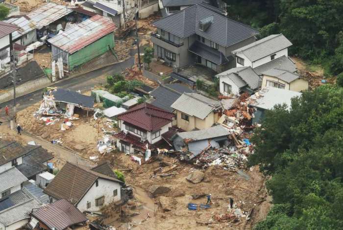 O serviço de notícias Kyodo, que calcula o falecimento de 34 pessoas até o momento, disse que uma morte ocorreu em um deslizamento de terra em Hiroshima, que provocou um incêndio. A NHK disse que deslizamentos de terra fizeram mais vítimas.