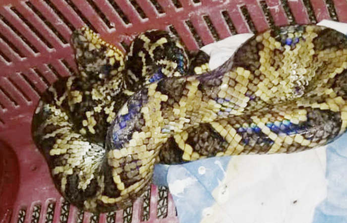 Após investigação local, a equipe de fiscalização da Fundação Florestal encontrou um indivíduo vivo de “Corallus cropanii”, a jiboia do Ribeira, em uma caixa na residência do suspeito. O animal foi resgatado pela equipe de fiscalização da Fundação Florestal e a Polícia Militar Ambiental foi acionada.