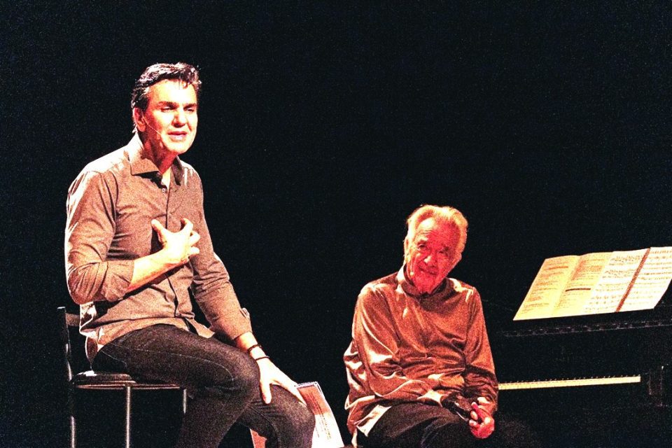 João Carlos Martins e Gabriel Chalita em cena do espetáculo “O Pianista e o Poeta” | Divulgação