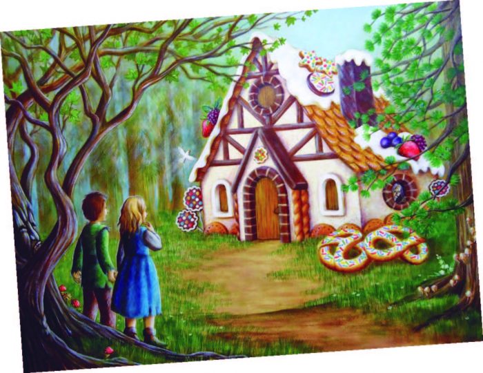 “João e Maria”, dos irmãos Grimm, é um conto que relata as aventuras de dois irmãos filhos de um pobre lenhador e que moravam na floresta com seu pai e a madrasta. Eles saem para colher amoras na floresta e perdem o caminho de casa. Eles acabam encontrando uma casa feita de doces. Com muita fome depois de tanto tempo procurando o caminho de volta para casa, João chama Maria para que eles comessem as guloseimas da casa. Enquanto as crianças se deliciavam com os doces uma velha (bruxa) aparece de dentro da casa e os convida para entrar.