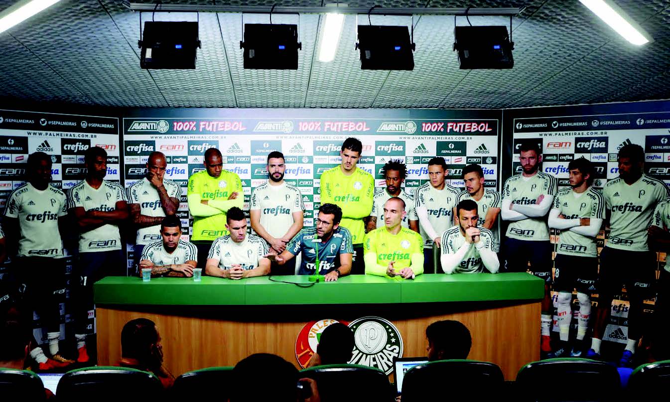 Os jogadores do Palmeiras, o técnico Alberto Valentim e membros da diretoria compareceram em conjunto para dar entrevista coletiva na tarde desta sexta-feira na Academia de Futebol. O treinador explicou que a iniciativa foi dele próprio após a derrota para o Vitória, no Barradão, na quarta-feira, e foi mantida em sigilo. Os jogadores explicaram que a atitude mostra a união do grupo também nos momentos difíceis (o time vem de duas derrotas seguidas, para Corinthians e Vitória).