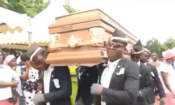 A repercussão do meme de um enterro com alegria e dança, criado por Benjamin Aidoo, vai fazer com que seu ‘modelo’ de homenagem fúnebre ultrapasse as fronteiras da África. O grupo já está com agenda de enterros em outros países… Chile, Argentina e Espanha, por exemplo. E eles nunca tinham saído de Gana.