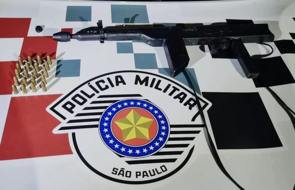 Eles localizaram a sacola e a pochete, onde havia 20 munições de calibre 9 milímetros, uma balança de precisão, 22 porções de maconha e 62 cápsulas com cocaína. Os policiais também localizaram a réplica de uma metralhadora.