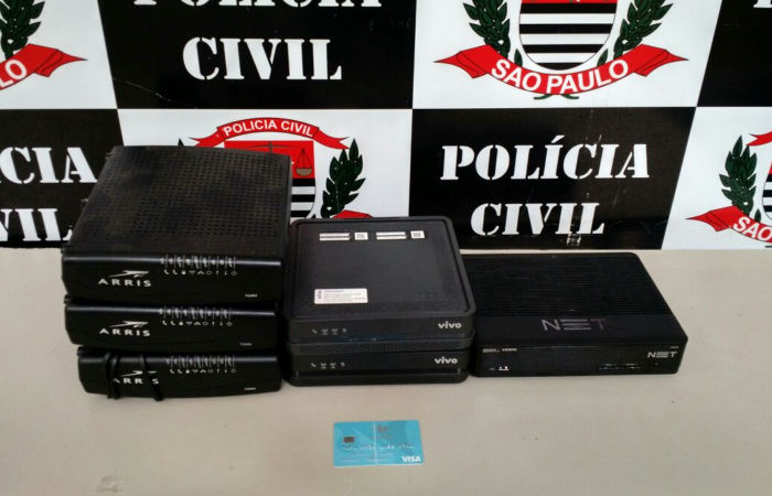 Em seu apartamento foram apreendidos seis aparelhos de modem e receptadores de TV a cabo e internet. Os policiais souberam que ele trabalha para uma empresa que presta serviço para uma operadora do segmento e investigam a procedência dos equipamentos.