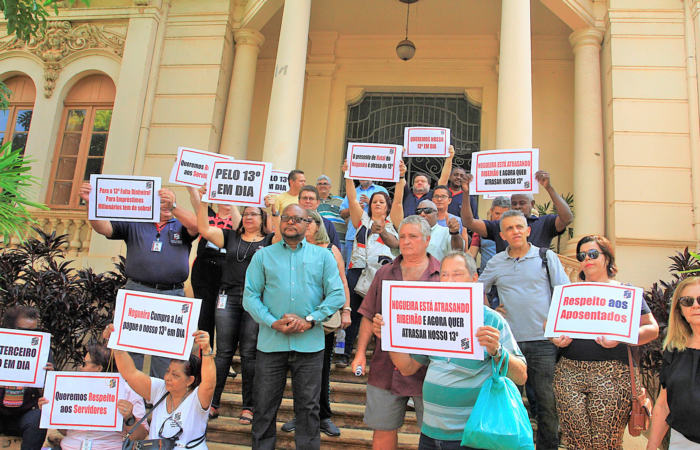 Foram formalizadas duas diferentes ações, mas com o mesmo conteúdo, uma específica para os servidores da ativa e que tem como requerida a prefeitura de Ribeirão Preto, e a segunda que trata dos aposentados e pensionistas, tendo como réu o IPM. A folha de pagamento dos 9.204 funcionários em atividade é de aproximadamente R$ 63 milhões por mês. A do órgão previdenciário é de quase R$ 40 milhões mensais. Também teve protesto na porta do Palácio Rio Branco.