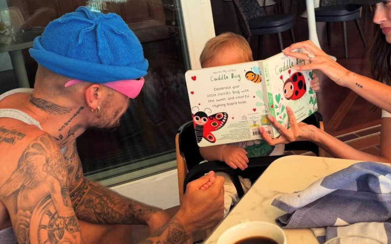 Justin Bieber postou no domingo, 27, algumas fotos de sua intimidade com Hailey Bieber e o filho deles, Jack Blues Bieber, de 11 meses. O casal apareceu lendo um livro infantil para o bebê, que completará 1 ano em agosto.
