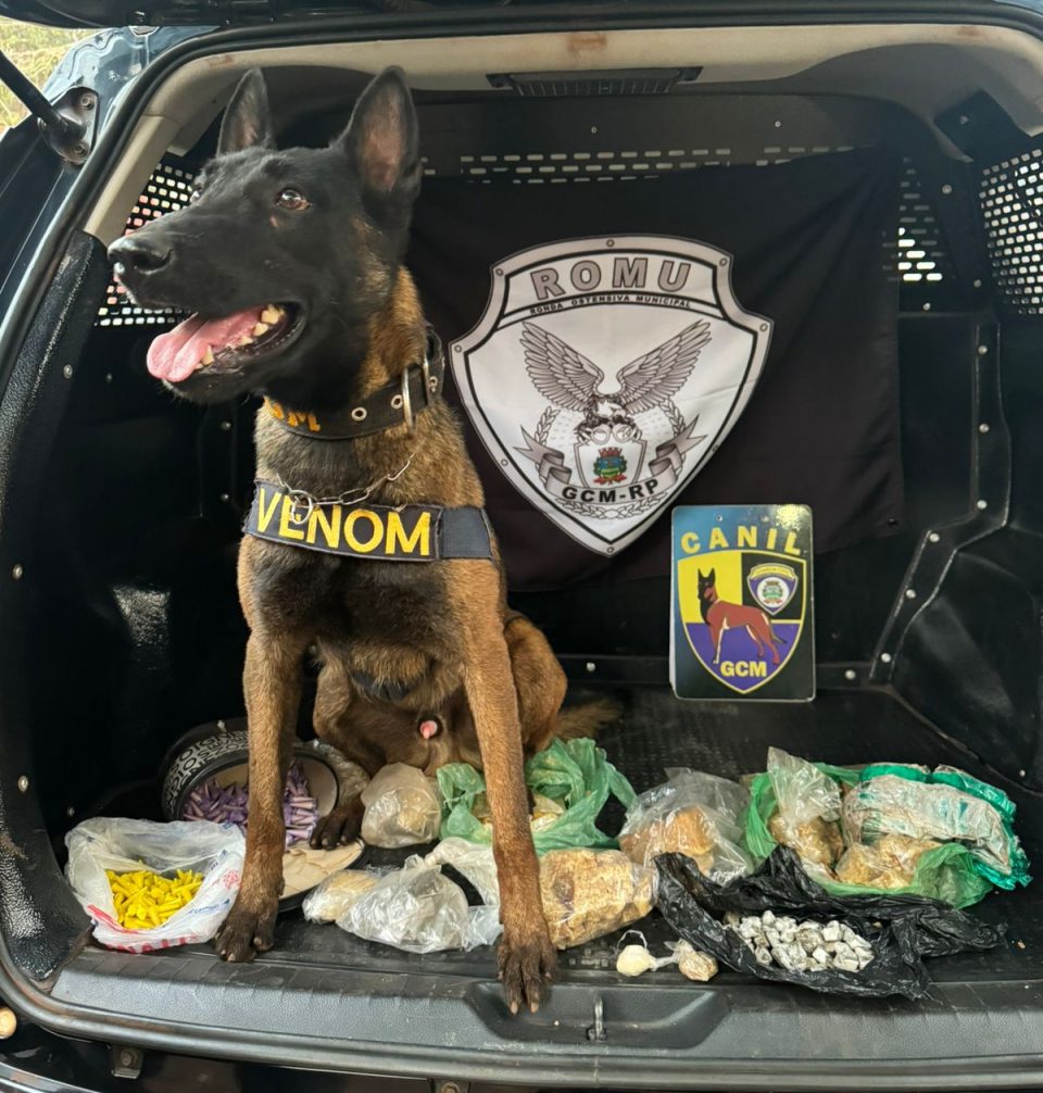 A droga foi levada para a Central de Polícia Judiciária (CPJ), no Centro. A Polícia Civil vai investigar o caso. Este foi o primeiro trabalho de Venom como cão titular da equipe Alpha da GCM. O novo titular substitui seu pai, Black, aposentado pela GCM na última semana, após sete anos como cão de faro da Corporação.