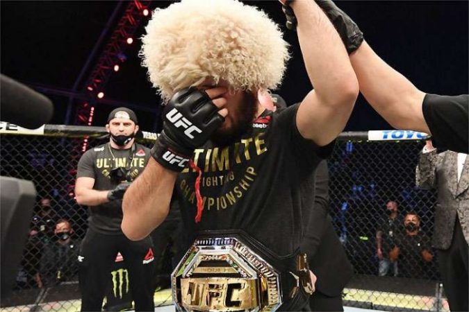 Khabib vence no UFC 254 e anuncia aposentadoria por morte do pai, vítima da covid