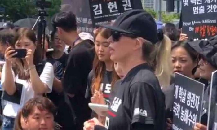 A atriz segurou um corpo de cachorro morto para as câmeras. “Às vezes, as imagens falam mais de mil palavras do que as nossas vozes”, disse. Basinger já fez campanha pelos direitos dos animais em outros países, mas esta foi a primeira vez na Coreia do Sul.