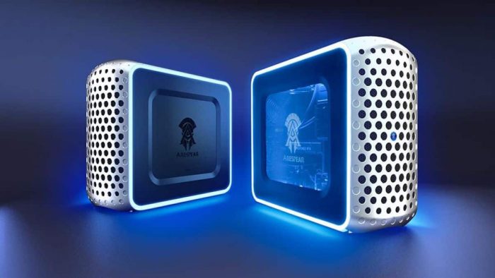Ao todo, são três opções de computadores da Arespear. Todos eles têm design parecido: são torres com a parte frontal que parece um ralador de queijo.