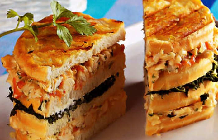 8. Monte o sanduíche com quatro fatias de pão, alternando cada um dos recheios.