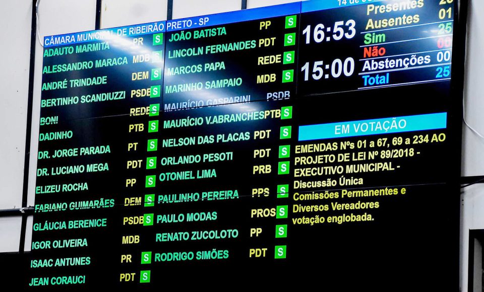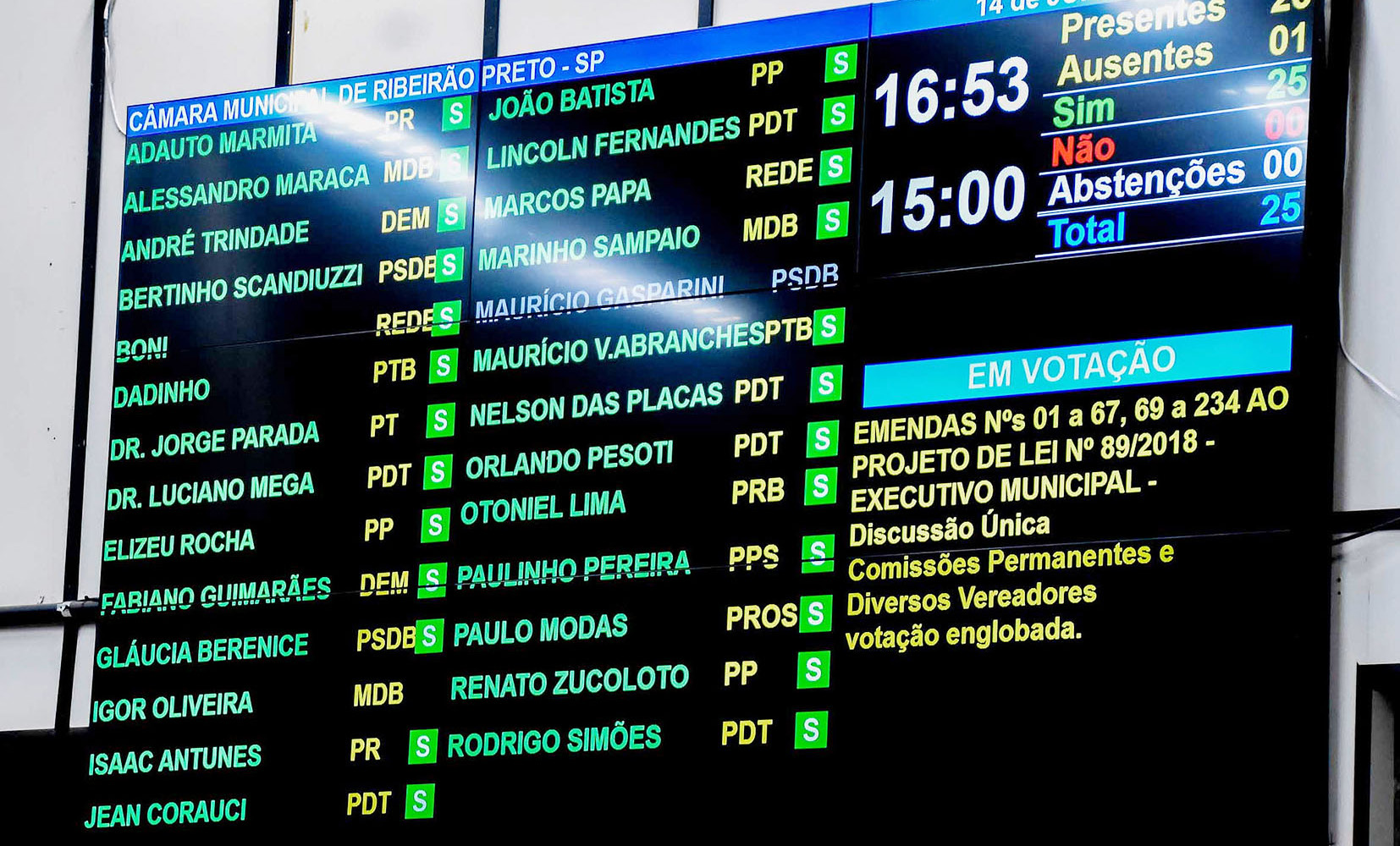A Lei de Diretrizes Orçamentárias (LDO) de 2019, aprovada na Câmara de Ribeirão Preto em 14 e 21 de junho depois de duas sessões extraordinárias, foi sancionada pelo prefeito Duarte Nogueira Júnior (PSDB) nesta quarta-feira, 18 de julho, segundo publicação no Diário Oficial do Município (DOM). O tucano vetou 98,7% das emendas parlamentares. De um total de 234 propostas, 230 foram retiradas do texto – três foram sancionadas e uma já havia sido extraída pelo autor antes da votação. As sugestões apresentadas pelo Legislativo somam R$ 399,42 milhões, 12,3% da receita recorde estimada, de R$ 3,247 bilhões.