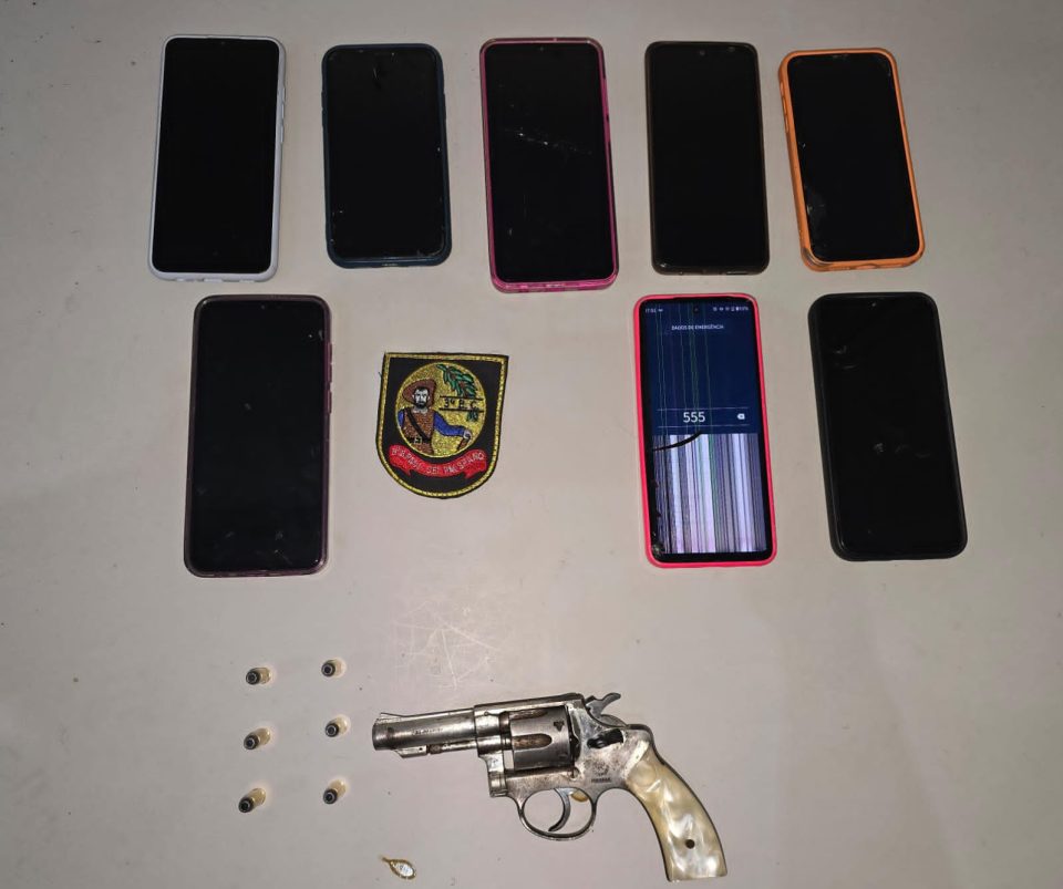 Com o homem foram encontrados os oito smartphones e um revólver calibre 32 com numeração raspada. Os telefones foram devolvidos às vítimas. A arma e a moto foram apreendidas. O homem foi levado para a Central de Polícia Judiciária (CPJ), onde foi preso em flagrante e encaminhado para uma unidade prisional, ficando à disposição da Justiça.