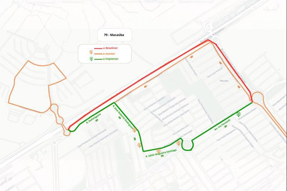 O novo percurso seguirá normalmente até a Reserva Macaúba e, em seguida, atenderá as vias internas do bairro, passando pelas ruas Delloiágono, José Roberto Rodrigues, Edith Nogueira Santiago e José Ruiz, além da rotatória local. Depois, o itinerário continua pela avenida Ivo Pareschi e pela avenida Luiz Galvão Cézar, retomando então o trajeto habitual.