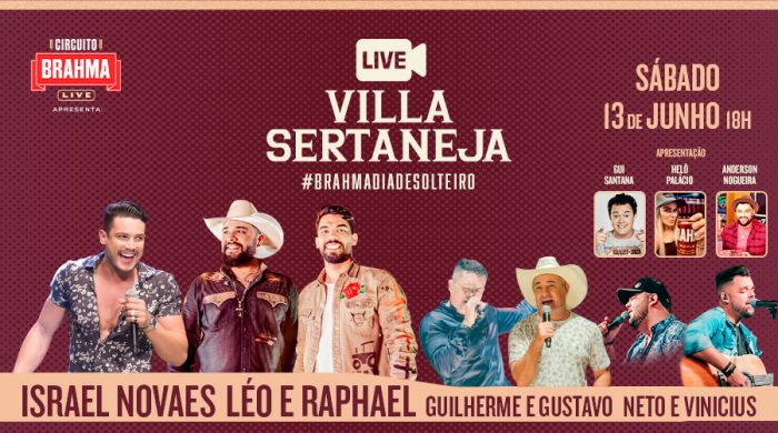 Está com saudades de uma balada sertaneja? Vinte e quatro horas após o tradi­cional Dia dos Namorados, o Villa Sertaneja promove a live #BrahmaDiaDoSoltei­ro, em parceria com a cer­vejaria da Ambev. A edição especial online acontece nes­te sábado, 13 de junho, Dia de Santo Antônio – o santo casamenteiro –, a partir das 18 horas no canal Radar Re­cords no Youtube.
