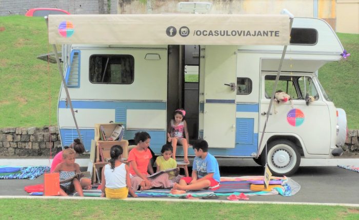 Neste final de semana, 11 e 12 de janeiro, a equipe d’O Ca­sulo Viajante vai estacionar sua Kombi Biblioteca no quintal do Sesc. A atividade consiste em fomentar e promover a democratização do livro por meio da mediação de leitu­ra e contação de histórias. A Kombi Biblioteca, uma Kombi Safari 83 caracterizada como motor-home, vai estacionar em nosso quintal, recheada com livros que ficarão à dispo­sição e ao alcance das mãos de crianças e adultos.