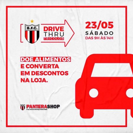 O torcedor botafoguense poderá mostrar novamente seu espírito solidário e de amor ao próximo e ainda ganhar descontos na loja oficial do clube. No próximo sábado (23), a partir das 9h, o Pantera realiza o “Drive Thru Solidário Tricolor” em frente ao Estádio Santa Cruz.