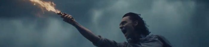 A Marvel divulgou dois novos teasers da série ‘Loki‘. O primeiro – que mistura cenas de outras produções do estúdio, como ‘WandaVision‘ e ‘Falcão e o Soldado Invernal‘ – mostra o “deus da trapaça” provocando um adversário e o chamando para um desafio (confira abaixo). Fãs não deixaram de notar que o protagonista está empunhando uma espada flamejante que se parece muito com a tradicional arma nórdica Lævateinn.