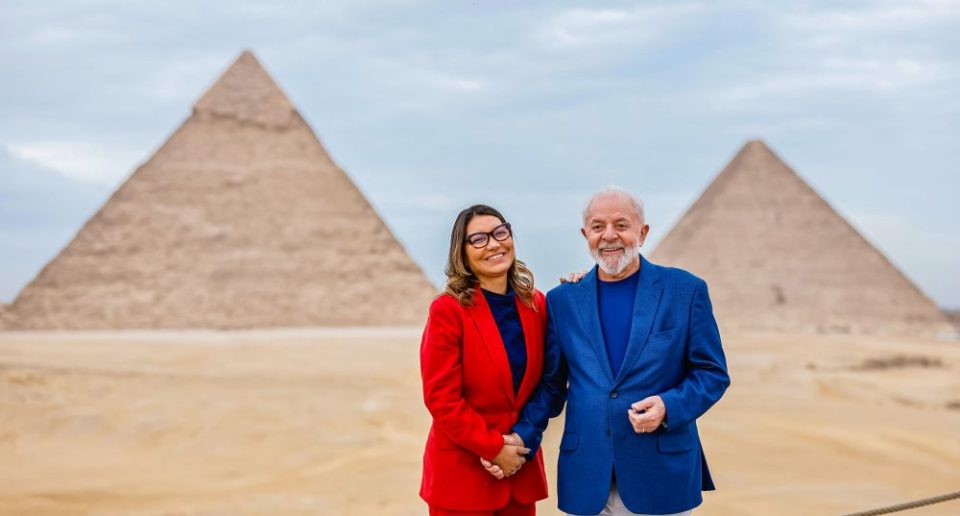 O perfil oficial de Lula no Instagram publicou imagens dele e da primeira-dama, Janja Lula da Silva, visitando a Pirâmide de Gizé. Nesta quinta-feira, o presidente brasileiro deve se encontrar com o egípcio Abdul Fatah Khalil Al-Sisi. Também é possível uma visita à sede da Liga Árabe, que fica no Cairo.