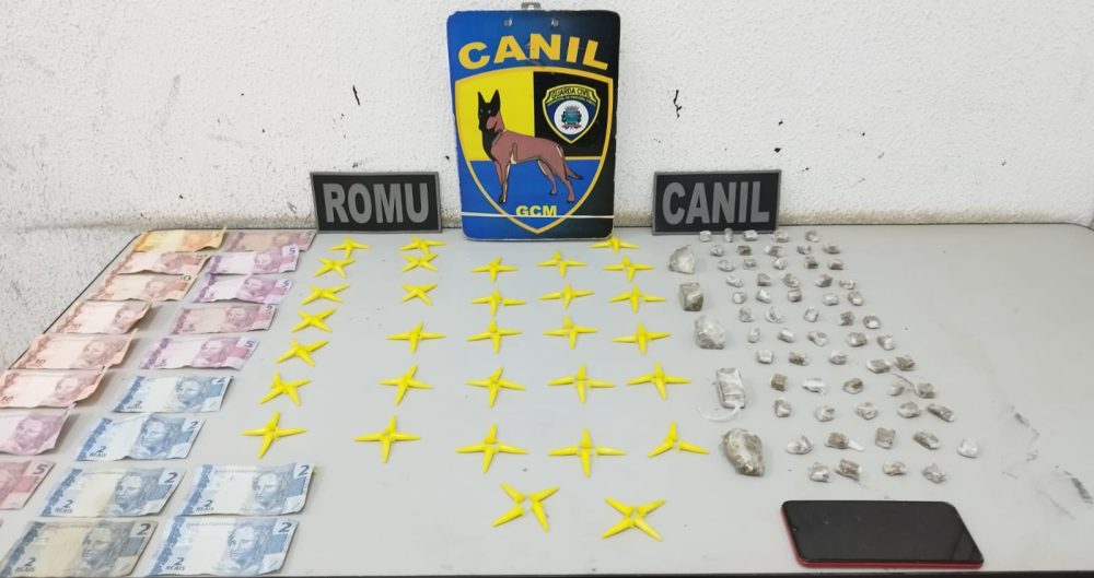Uma operação conjunta entre equipes do Canil e Romu avistaram um homem parado com um pacote na mão. Ao perceber a aproximação das viaturas, ele jogou o pacote no canteiro central da avenida. Ao fazer a abordagem, havia R$ 122 em cédulas e moedas de diversos valores nos bolsos do homem.
