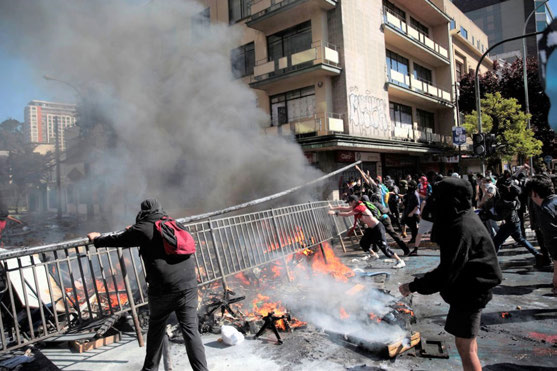 Mais cedo, na vizinha cidade portuária de Valparaíso o Congresso chileno foi esvaziado pela primeira vez desde sua reabertura, em 1990, após centenas de manifestantes tentarem cruzar o perímetro de segurança, em meio a enfrentamentos com a polícia, que os reprimiu com violência.