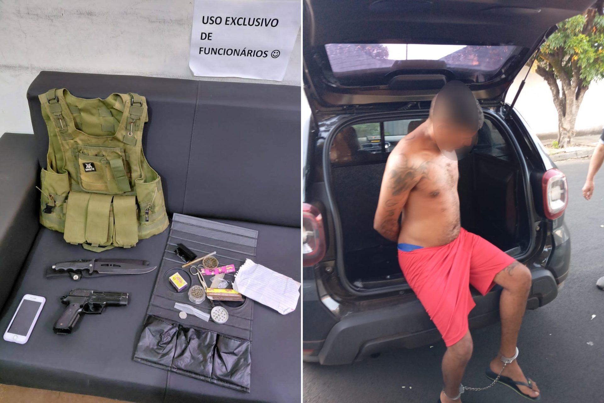 Um dos presos na terceira fase da Operação Criptopix tinha simulacro de arma de fogo, facão e colete balístico (Fotos: Divulgação/Polícia Civil)