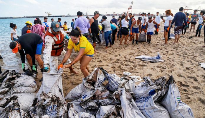 A primeira mancha de óleo foi oficialmente identificada em 30 de agosto, no município de Conde, na Paraíba. Quatro dias depois, o material foi encontrado no segundo Estado, Pernambuco, na Ilha de Itamaracá. Em 1º de outubro, a Bahia foi o nono e último Estado do Nordeste a receber óleo, com a primeira mancha identificada na Mata de São João. Por fim, fragmentos são encontrados no Espírito Santo desde 7 de novembro. Ao todo, foram retiradas mais de 4,4 mil toneladas de petróleo e itens contaminadas com o óleo, tais como baldes e equipamentos de proteção.