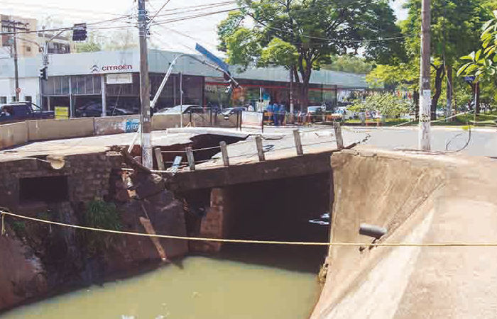 Já em abril de 2014, as chuvas que atingiram a cidade fizeram um ônibus do transporte coletivo ser parcialmente “engolido” por uma cratera no cruzamento das avenidas Paris e Guido Golfeto, no Jardim Independência, Zona Norte de Ribeirão Preto. A forte correnteza fez com que o barranco que sustentava a ponte cedesse. Ninguém se feriu e as obras de recuperação da ponte demoraram três meses. Onze pessoas estavam no veículo tiveram que sair pela porta de trás. Uma senhora que estava entre as passageiras teve que ser carregada ao passar mal. Ninguém se feriu.
