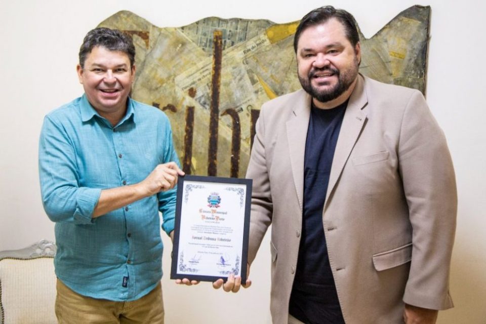 O vereador de Ribeirão Preto, Alessandro Maraca (MDB), entregou nesta sexta-feira, 14 de julho, ao diretor do Tribuna Ribeirão, Eduardo Ferrari Batista de Santana, Moção de Congratulação pela contribuição no projeto Galeria ao Ar Livre em comemoração aos 167 anos de Ribeirão Preto. A entrega do diploma foi feita durante visita ao jornal.