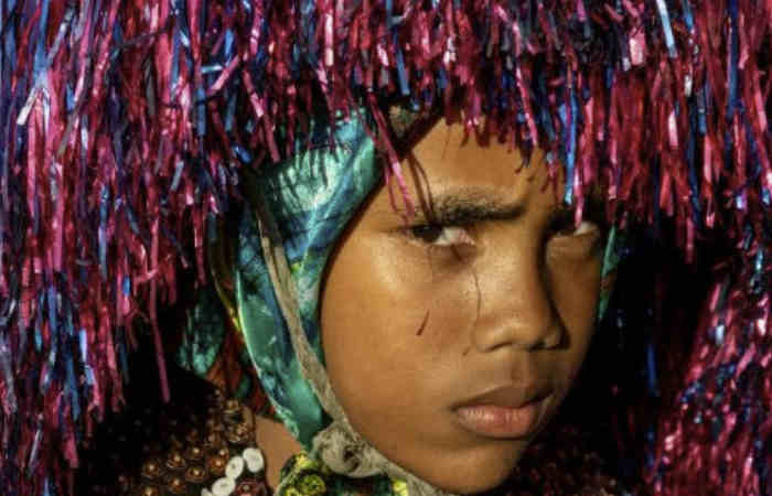 “Os caboclos de lança são os guerreiros de Ogum. Descendentes de escravos. Vestem-se com luxo durante os dias de Carnaval. Suas delicadas golas são bordadas de azulejos portugueses e a cabeleira de papel celofane colorido brilha ao sol trazendo para perto seu guia espiritual. Carregam sinos, grandes e pesados, com o som dos facões dos cortadores de cana”, diz Andrea, que já registrou 38 festas populares e manifestações culturais e religiosas, em 13 estados diferentes.