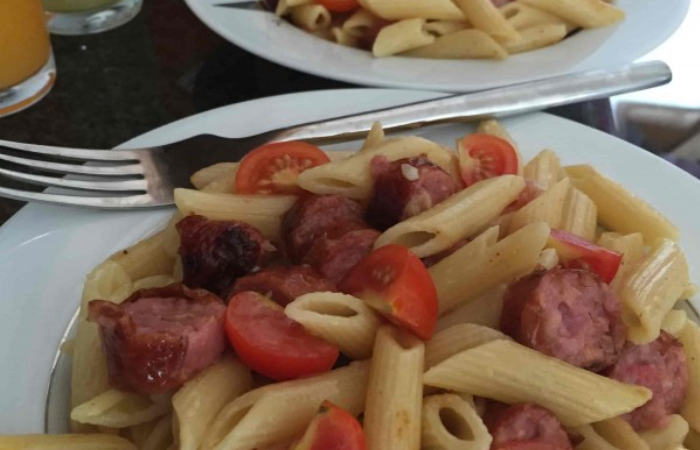 Massa com salsicha fresca e tomate cereja