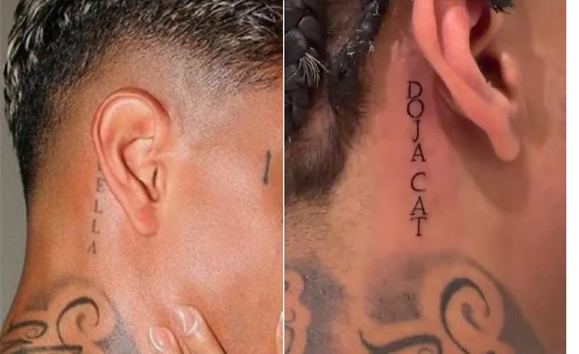 No lugar do nome “Bella”, que ficava atrás da orelha, o artista tatuou o nome da rapper americana Doja Cat. Ele também aproveitou para homenagear o afilhado Arthur com uma tatuagem nas costas.